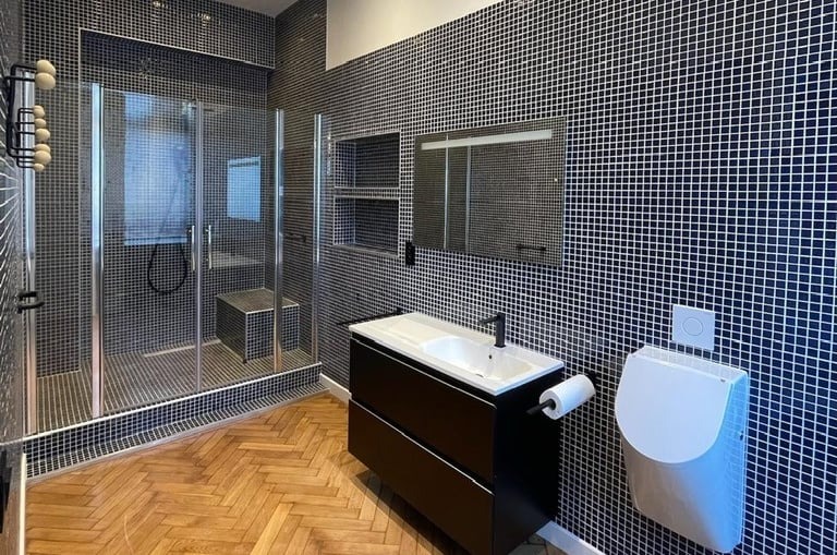 Rénovation complète d’une salle de douche, alliant lignes contemporaines, matériaux élégants et finitions soignées. Un espace repensé pour offrir confort, fonctionnalité et esthétique.