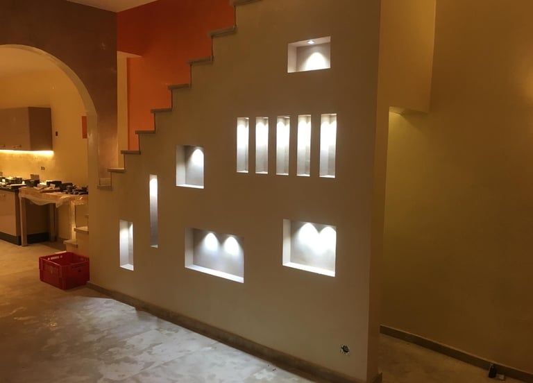Plafonnage, enduits, cloisons et finitions soignées pour un rendu propre, durable et parfaitement intégré à votre intérieur.